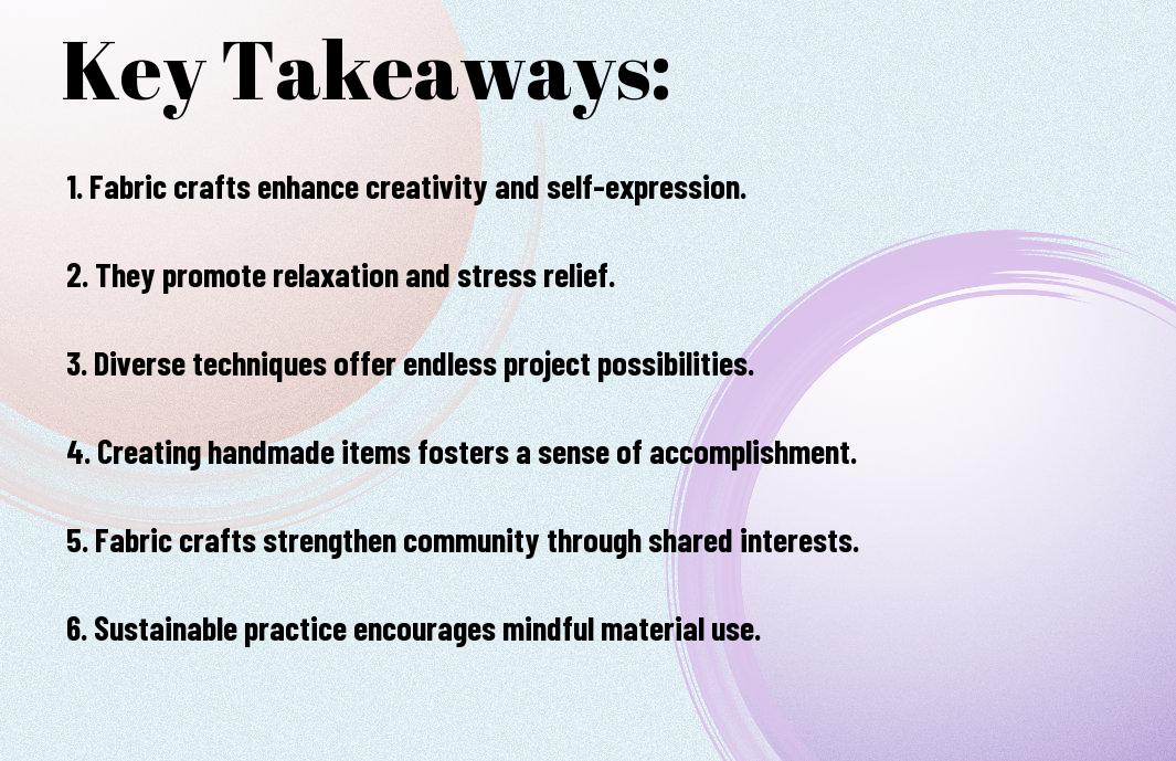 As you explore the world of fabric crafts, you’ll discover a wide range of creative possibilities. You can express your personality and style through various techniques, from sewing and embroidery to quilting and patchwork. With your own two hands, you can transform simple fabrics into unique and functional items, such as clothing, accessories, or home decor. Your imagination and skills will guide you as you explore into this rewarding hobby.